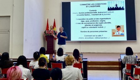 Cette année, la formation était centrée sur l’oral : faire parler en classe de FLE, mieux parler, mieux prononcer. Bao Nhung y a trouvé matière à réinvestir les activités dans ses classes à la rentrée.
