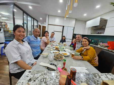 Nam Phuong et Pascal sont adhérent·es de Préfasse depuis l’an passé. Nam Phuong, originaire de Hanoï est rentrée avec sa « petite famille » pour le Têt rendre visite à sa « grande famille vietnamienne » et aux ami·es. Hoai Anh a été sa professeure de français avant son départ pour la France où elle est maintenant anesthésiste en région parisienne.