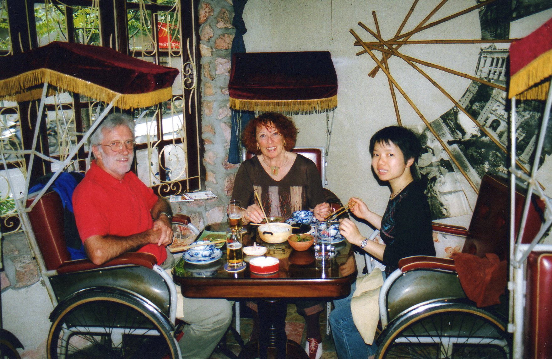Plus tard, nous dînons avec la jeune Hang et ses parents qui voudraient qu’elle aille au lycée en France. On discute du projet.